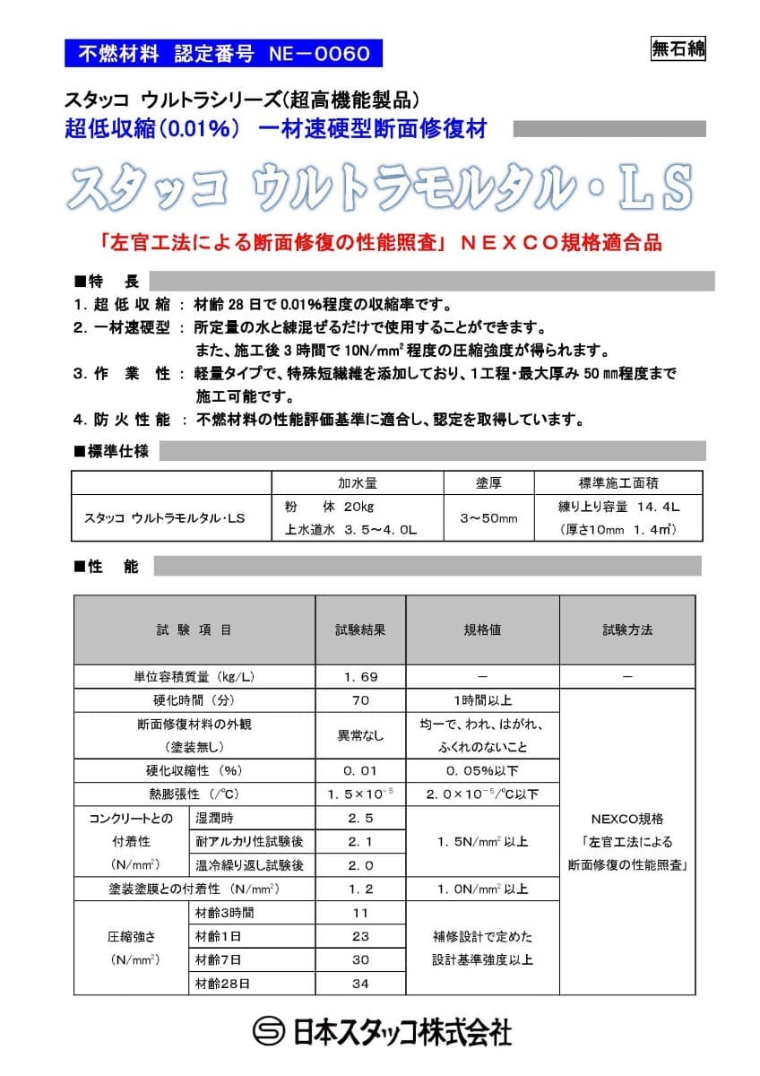 スタッコ ウルトラモルタル・LS 20kg/袋 日本スタッコ