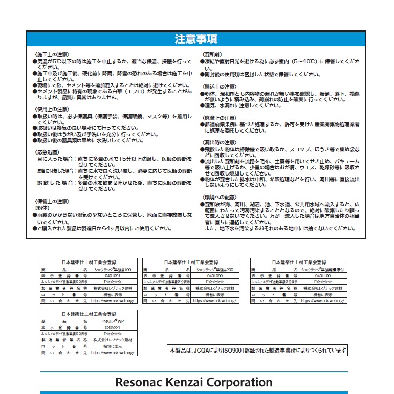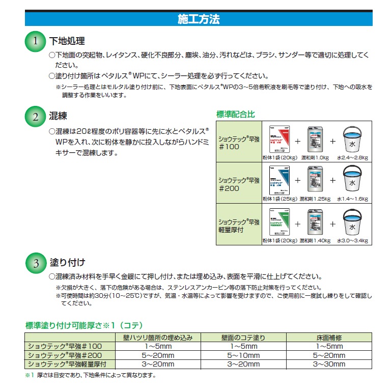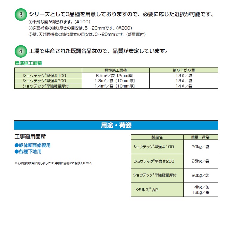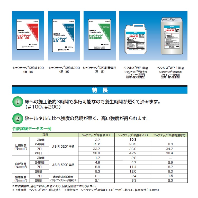 1.床への施工後後約3時間で歩行可能なので養生期間が短く済みます(#100、#200)。