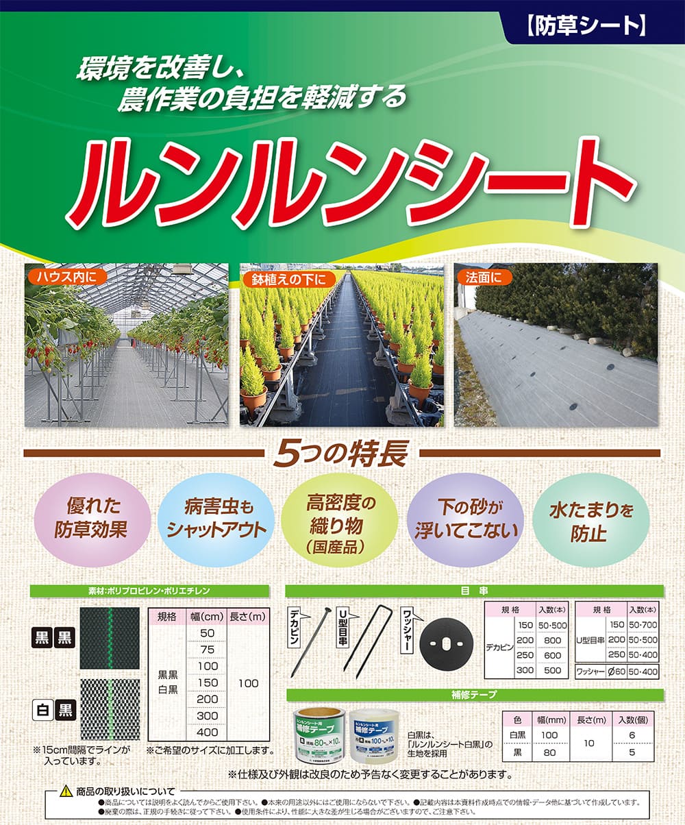 ルンルンシート 50cm×100m/巻 白×黒 雑草 芝生 DIY 草 庭 雑草シート 小泉製麻株式会社