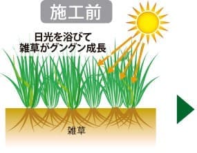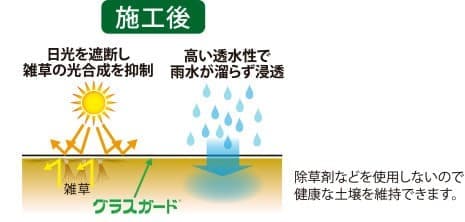 施工が簡単で水はけが良い、日光を遮断し雑草を成長させない。