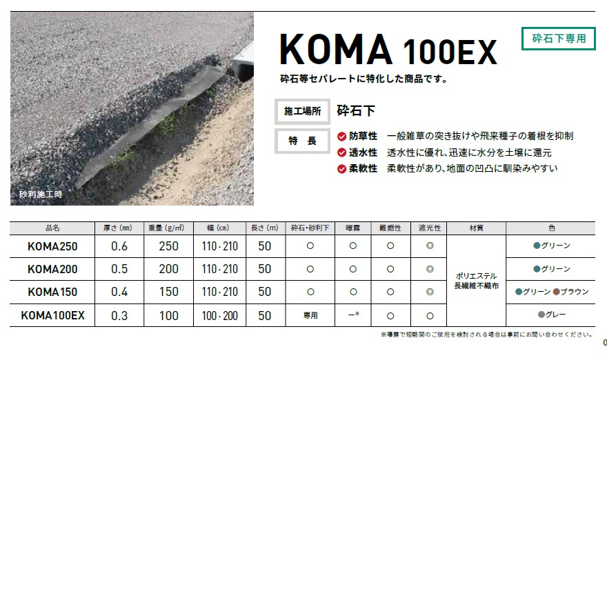 KOMA100EX 幅2m×長さ50m/巻 小泉製麻株式会社 防草シート 雑草シート