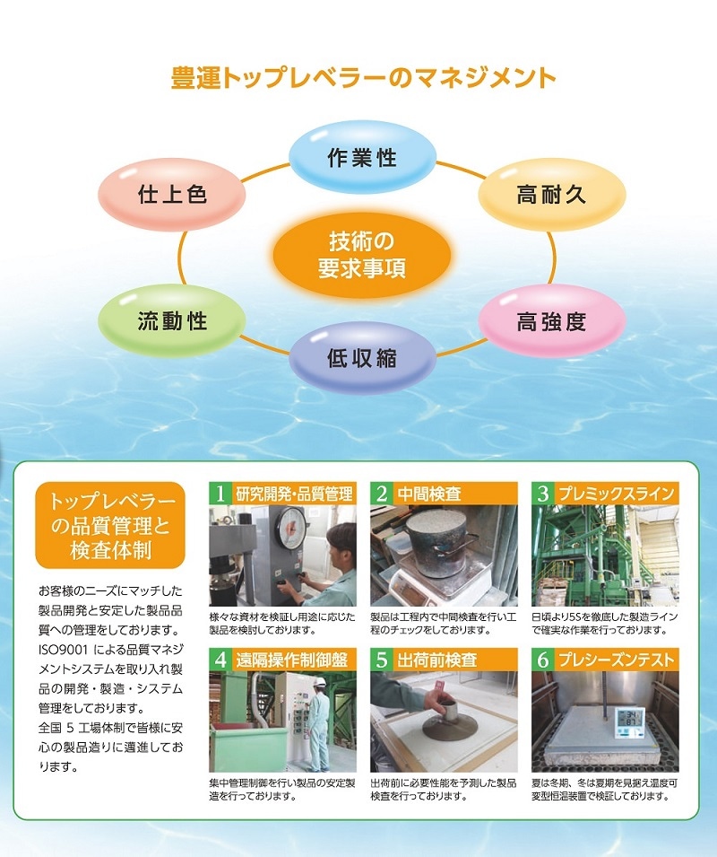 流し込みだけで平滑な面が得られます。浮き水が発生しないのできれいに仕上がります。