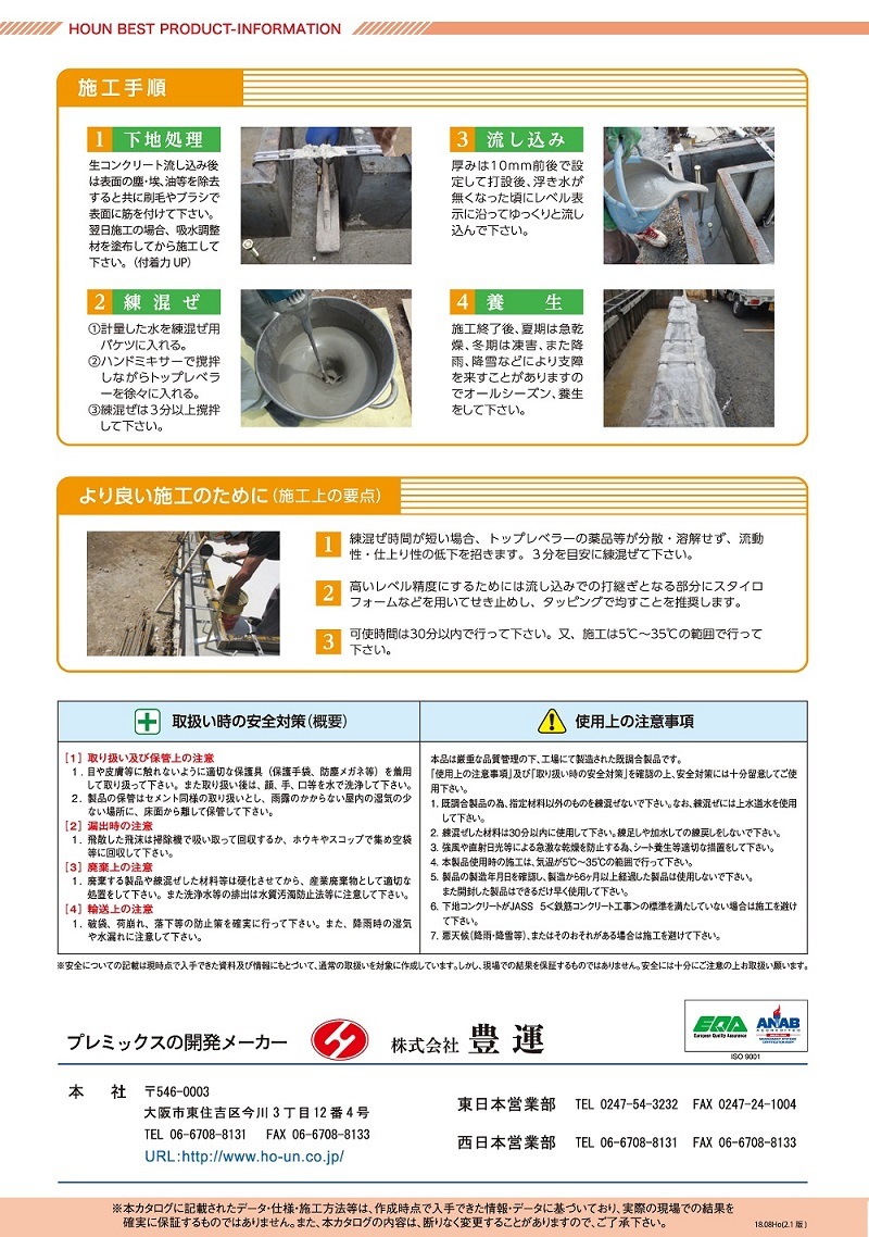 基礎コンクリートと同等以上の強度を有し、またコンクリートとの接着性は良好です。