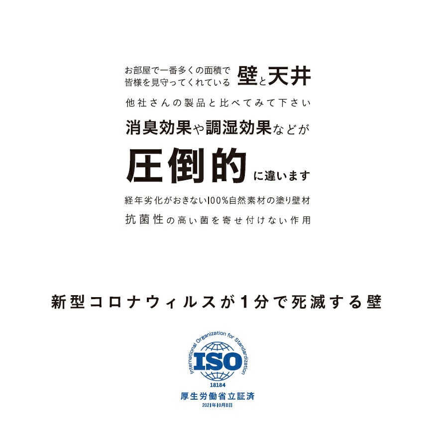 消臭効果・調湿効果あり・ 漆喰(しっくい)にはない高機能な内装専用の塗り壁材