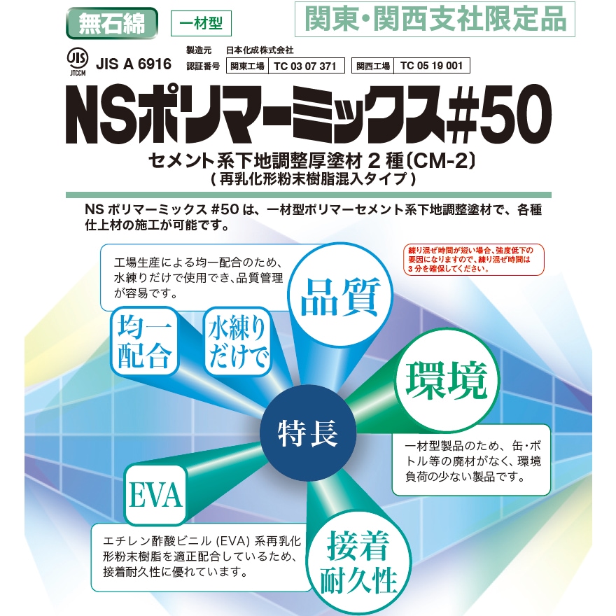 日本化成 NSポリマーミックス#50 25kg/袋 露出仕上げが可能 下地から仕上げまで施工可能 こて押さえの施工性UP 【2025/9月発売】