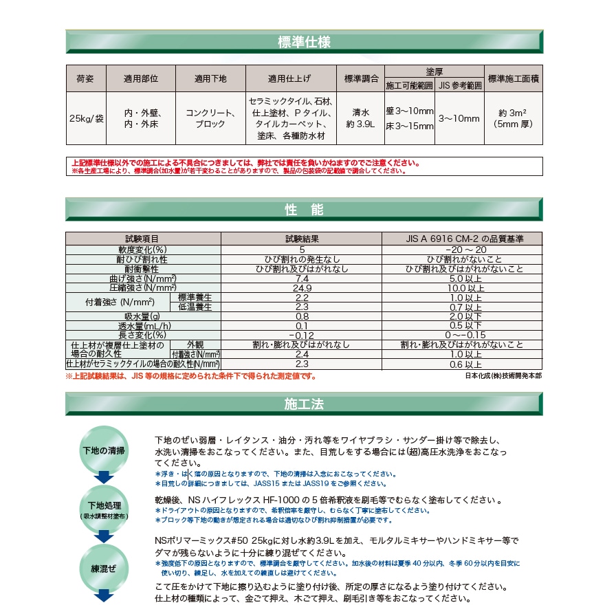 【施工塗厚】NSポリマーミックス#50 3~15mm/NSフロアハード 2~5mm