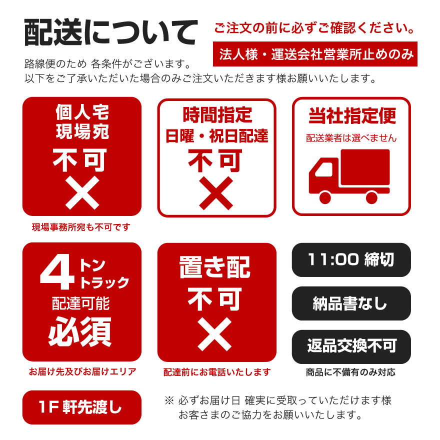エリアや道路状況により配送不可(支店止めのみ)の場合あり